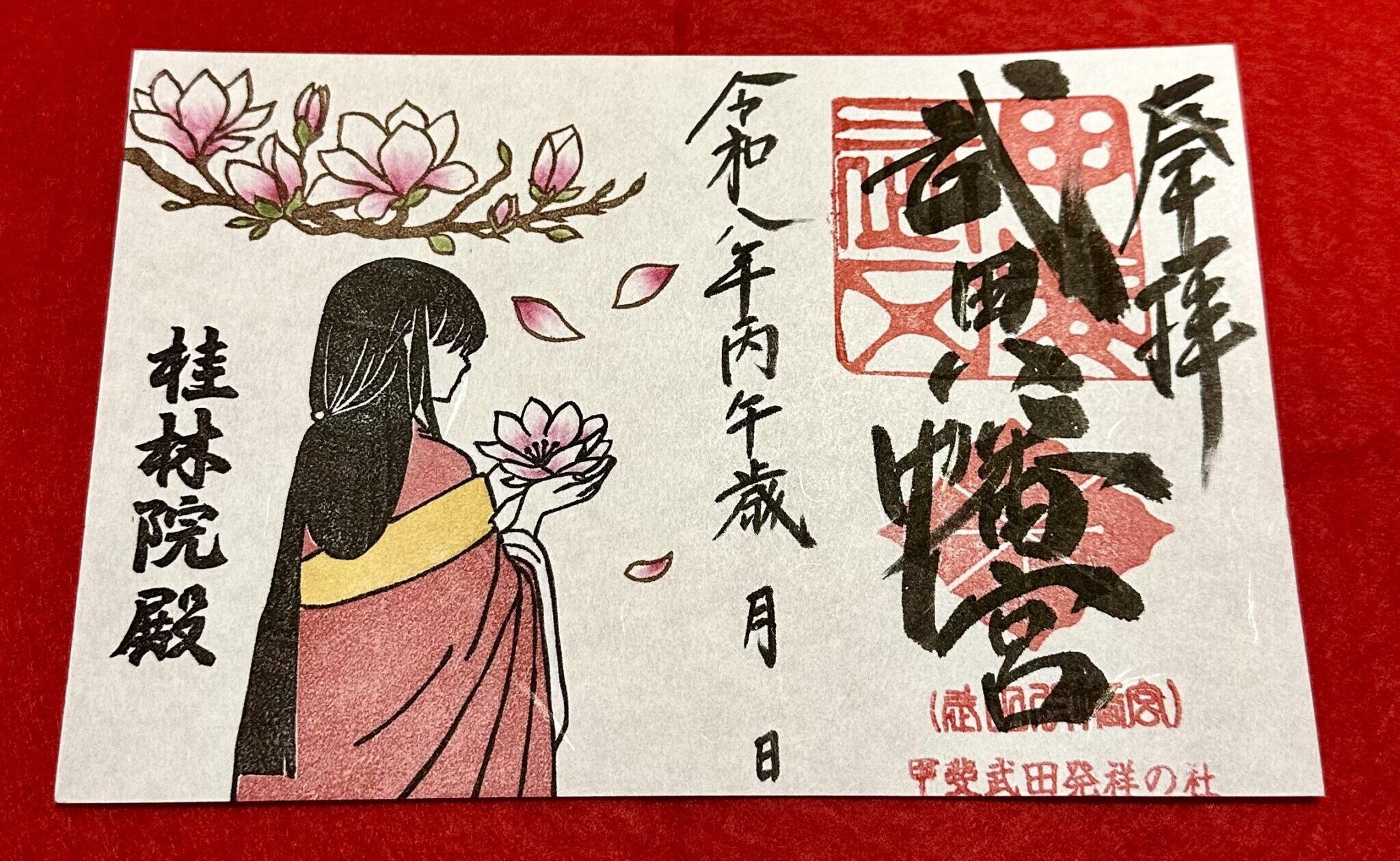 当時19歳だった勝頼夫人は、2月19日に武田家の氏神である武田八幡宮に、武田家の武運を願い、祈願文を奉納しました。