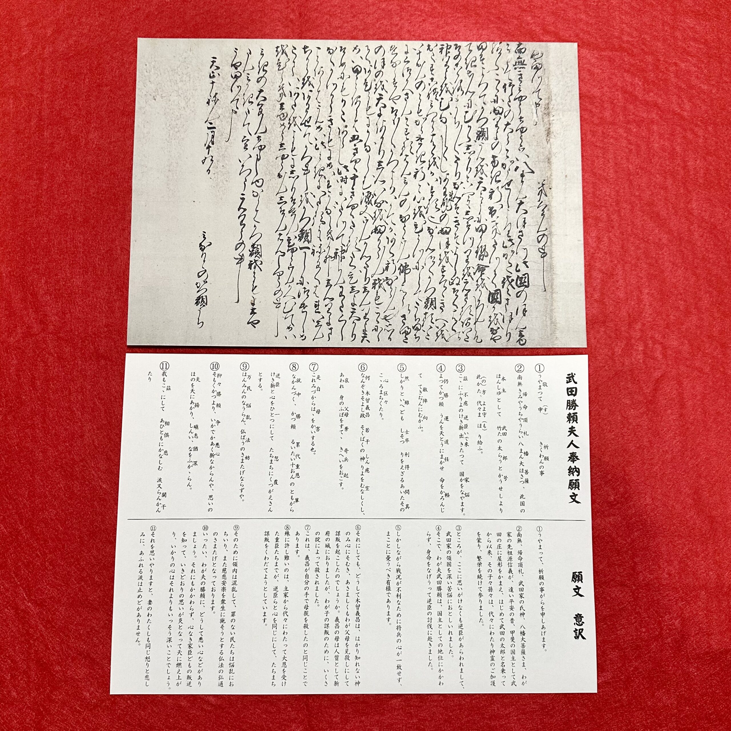 願文複製をご希望の方は限定御朱印と併せての授与となります。