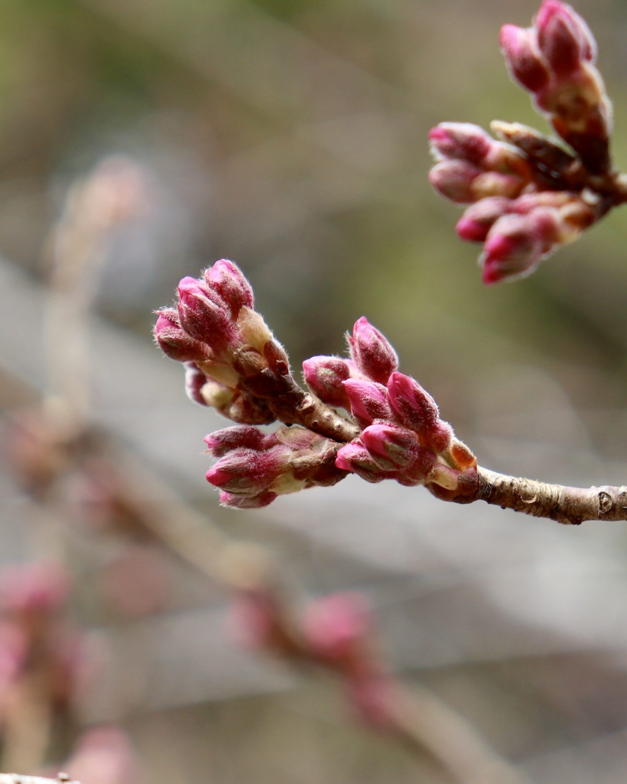 駐車場のエドヒガンザクラの蕾が、ピンク色に色づき、ふっくらと膨らんできました🌸