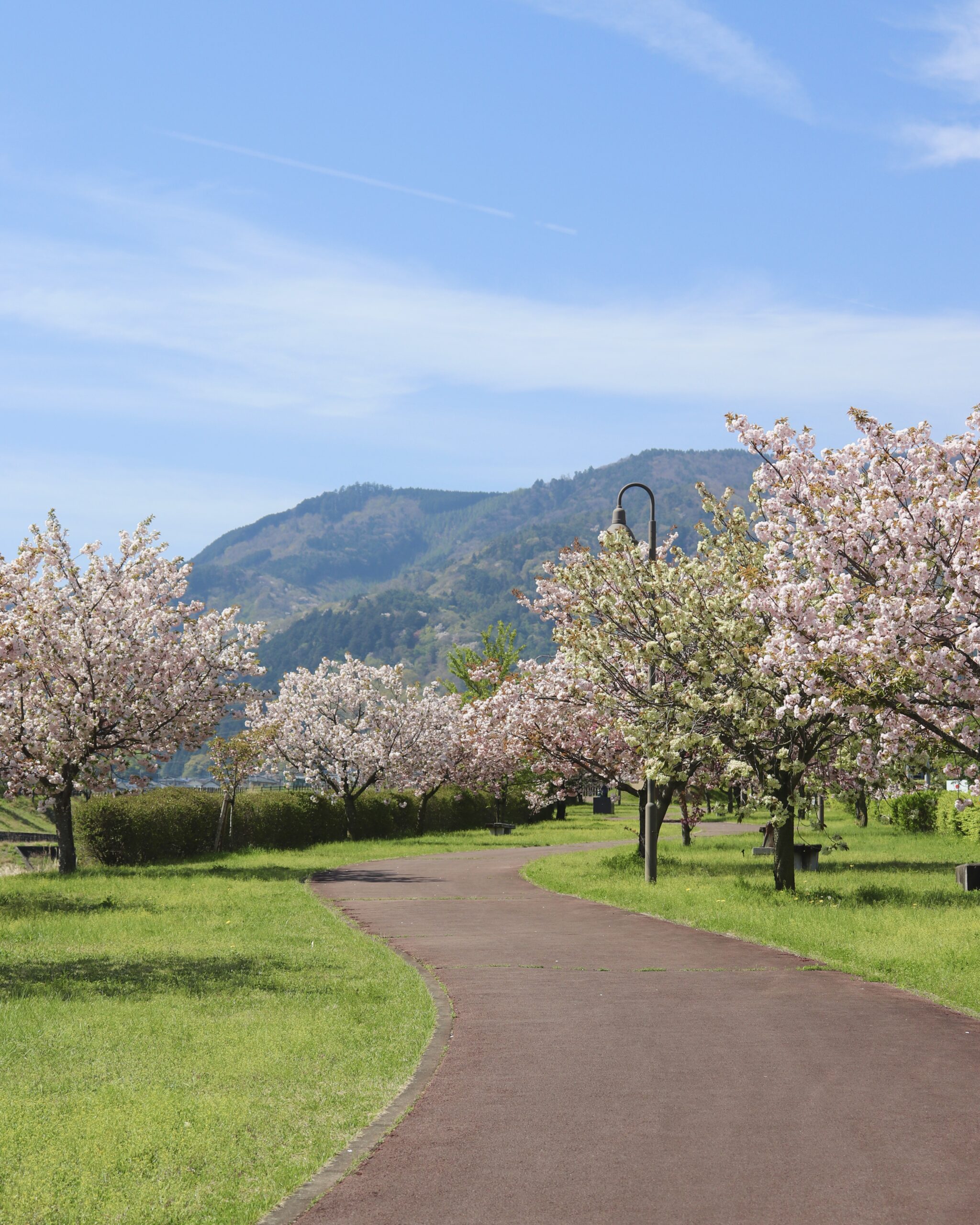 神社から車で約5分の幸福の小径では、八重桜が見頃です。