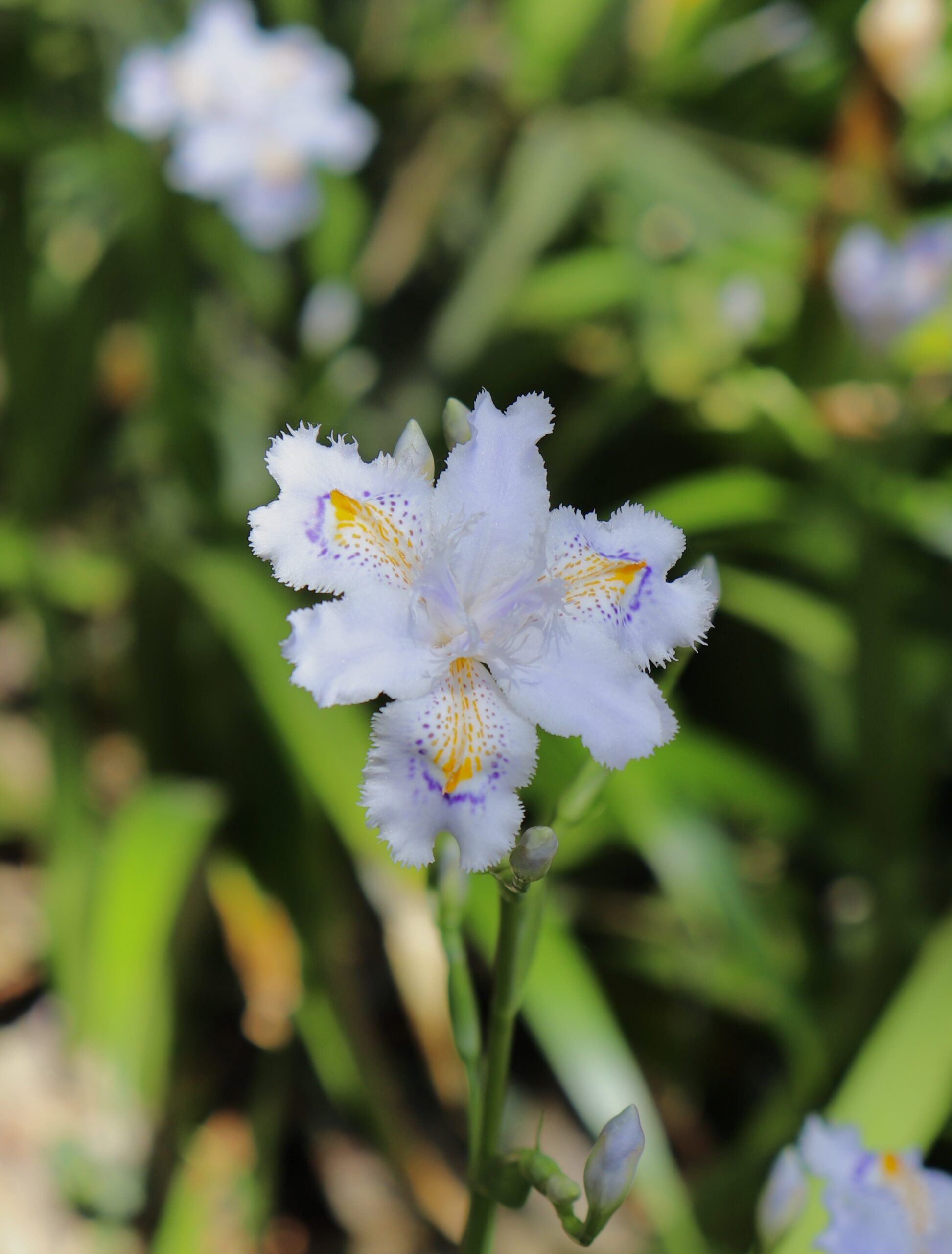 シャガの花は一日花といわれ、朝に咲き始め夕方にはしぼみますが、途切れることなく次々と花を咲かせます。